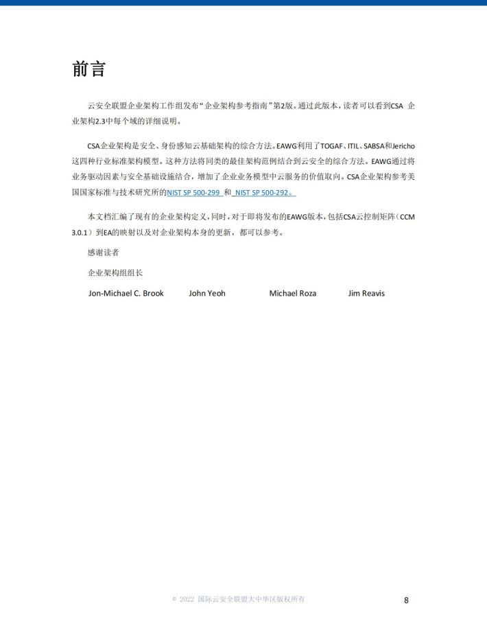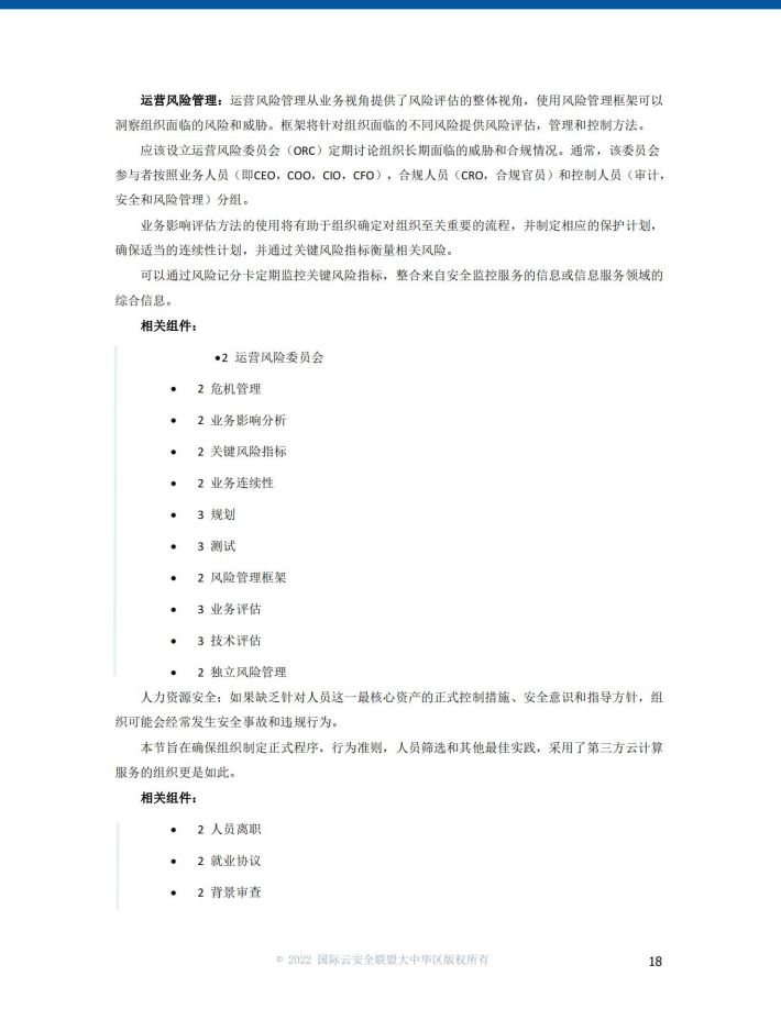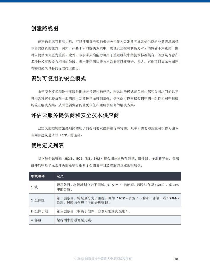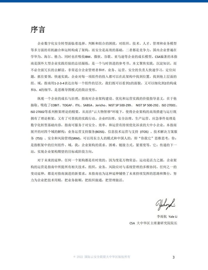 企业数字化安全转型面临着选择、判断和组合的困扰,对组织、技术、人才、管理和业务模型等多方面的有机融合和运转构成了架构,而安全是高效的基础,二者都是竞争力。国内企业普遍在学华为、海尔、格力,同时也在吸收IBM、微软、谷歌、亚马逊等企业的成长模型。CSA编著的本指南是国外大型企业实践经验的总结凝练,是一个与时俱进的参考书。本文聚焦实践,沉淀知识,而不必全面冗长的去解读,非常适合企业管理者和IT、业务、运营、安全的负责人快速学习,定位问题,抓住要领,快速实践,企业对每一项组件的投入都可以在此架构中找到位置,找到他上层面的组、域。指南用1-2-3-4表达出每一个组件的层次,我们既可以看到1的面貌,又可以细化到2的构成和3、4的细节,是思维导图模式的简洁变形。