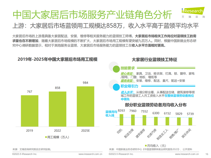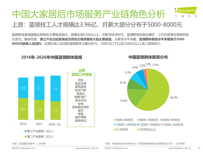 上游:蓝领群体规模高达3.96亿,其中大家居后市场用工规模858万