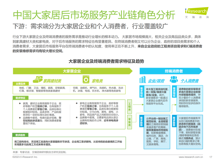 下游:以大家居企业及终端消费者为主要需求方,同时大家居企业分为家具建材企业及家电企业