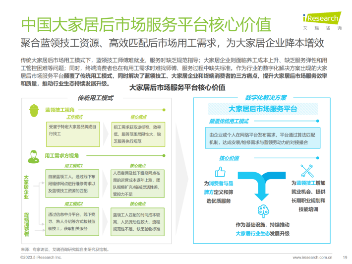 大家居行业电商化逐年发展,利好服务平台,后市场服务刚需低频,利好综合类平台零工模式渗透,平台模式可有效降低成本,大家居后市场有望向更多蓝领场景延申