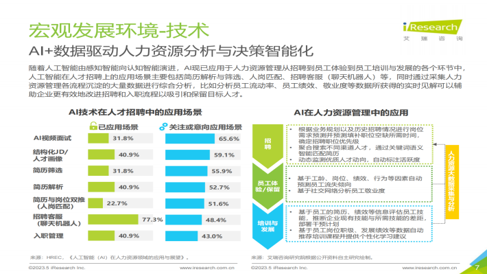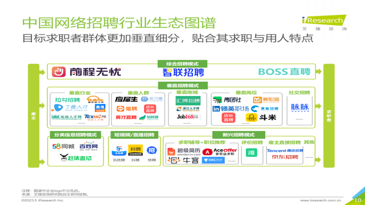 老年就业群体将呈逐步扩大的趋势,但老年人口进入就业市场仍面临着专业技能和企业岗位要求错配突出、就业渠道有限、相关法规不完善等较多阻碍;随着Z世代步入职场,求职者对企业的需求更加多元复杂,用人企业的雇主品牌建设对人才吸引的重要作用越来越突出。招聘平台的核心价值来源于C端,其重心应围绕求职者的核心诉求展开,即提供真实且匹配度更高的岗位和及时有效的反馈,而Al对人岗精准匹配的价值依然有较大挖掘潜力,如通过行业专家级知识图谱智能阅读和抽取信息对简历和职位等非结构化数据进行解构和关键要素智能补充,基于更全面的人才画像提高人岗匹配精准度。