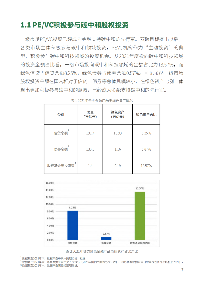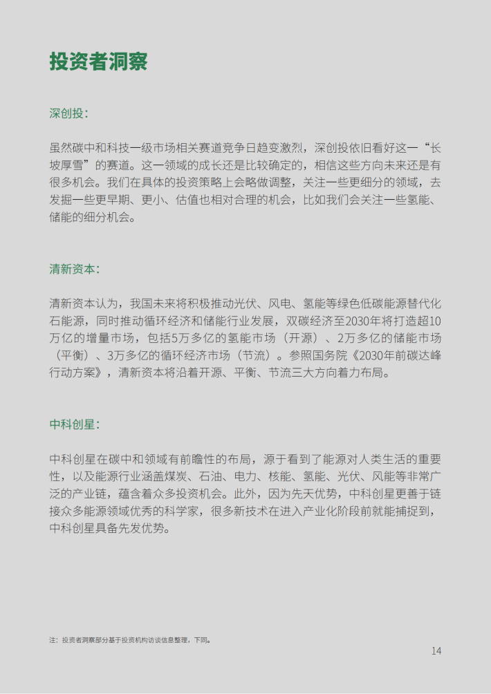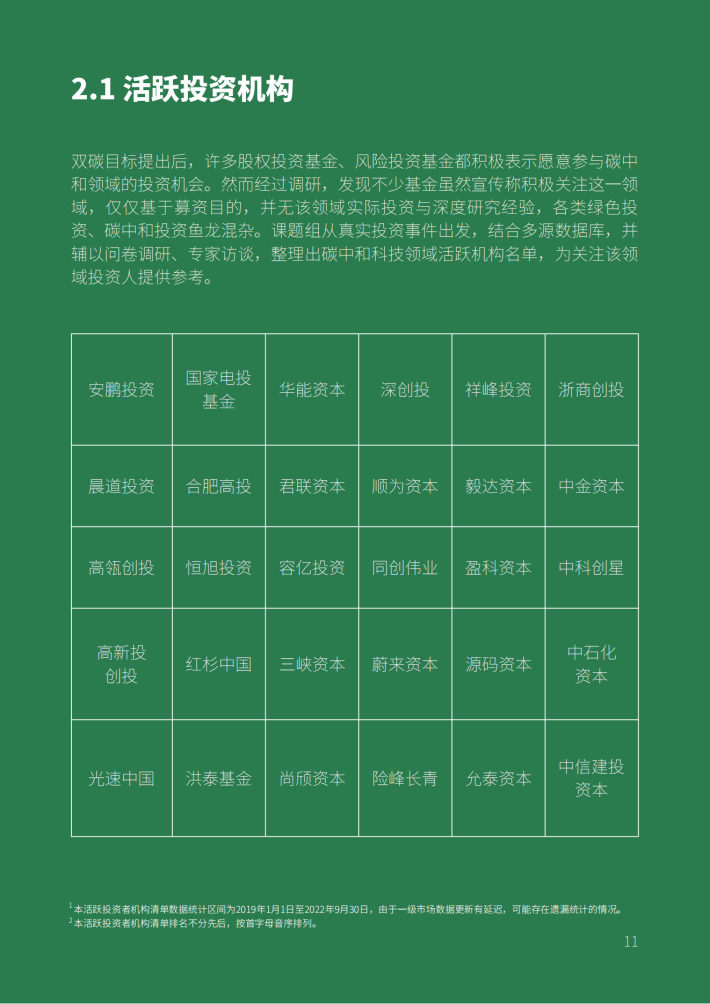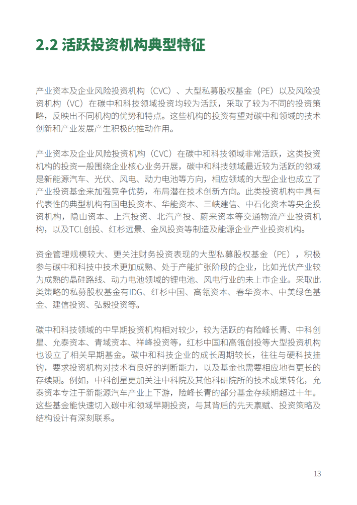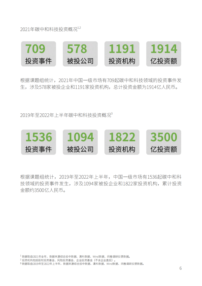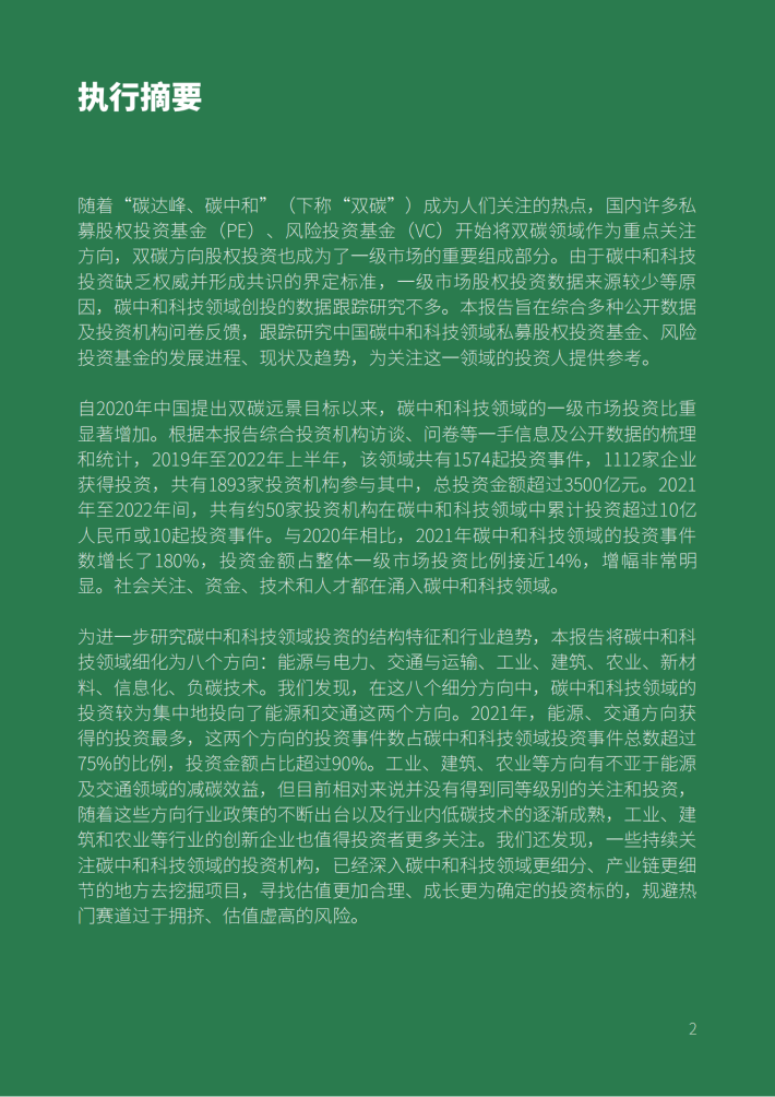 随着“碳达峰、碳中和”(下称“双碳”)成为人们关注的热点,国内许多私募股权投资基金(PE)、风险投资基金(VC)开始将双碳领域作为重点关注方向,双碳方向股权投资也成为了一级市场的重要组成部分。由于碳中和科技投资缺乏权威并形成共识的界定标准,一级市场股权投资数据来源较少等原因,碳中和科技领域创投的数据跟踪研究不多。本报告旨在综合多种公开数据及投资机构问卷反馈,跟踪研究中国碳中和科技领域私募股权投资基金、风险投资基金的发展进程、现状及趋势,为关注这一领域的投资人提供参考。