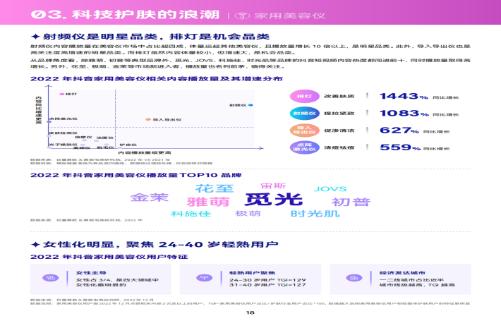 巨量引擎&巨量算数联合专业护肤知识科普平台基础频究、中国新消费龄略品牌管理咨询公司OIBCHNA,共同发布《科技向上,肌源美丽一2023巨量引擎科技护肤白皮书》。