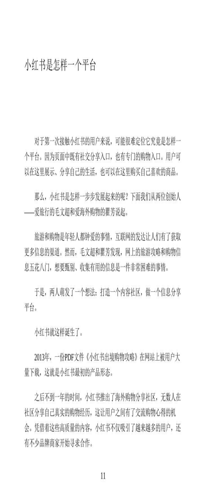 其实,小红书最初的产品形态是2013年在网站上发布的一份PDF文件《小红书出境购物攻略》,不久就获得了用户的大量下载,小红书就是从这里开始扬帆起航的。