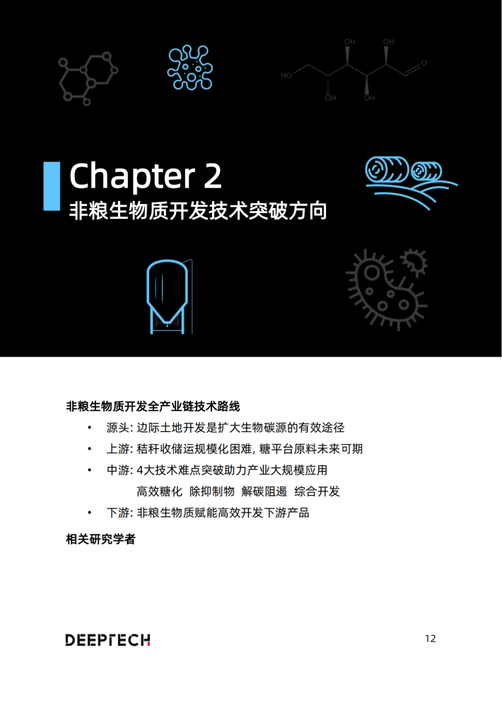 本报告聚焦非粮生物质开发关键技术,重点关注非粮生物质高效糖化、非粮生物质综合利用、酶与工业菌种开发,以及由非粮生物质利用带来的产业结构变革。