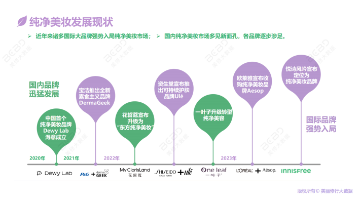 Clean Beauty起源于欧美市场,在国外拥有比较成熟的技术和行业准则,但国内纯净美妆市场起步较晚,目前仍在快速发展和法规逐步规范进程中。目前国内外针对“纯净美妆”仍没有官方的定义和标准,参考行业的标准和经验共识。