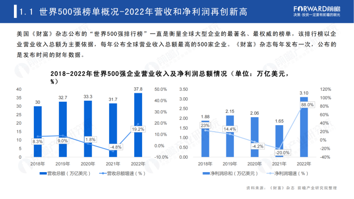 美国《财富》杂志公布的“世界500强排行榜”一直是衡量全球大型企业的最著名、最权威的榜单,该排行榜以企业营业收入总额为主要依据,每年公布全球营业收入总额最高的500家企业。 《财富》杂志每年发布一次,公布的是发布时间的财年数据。