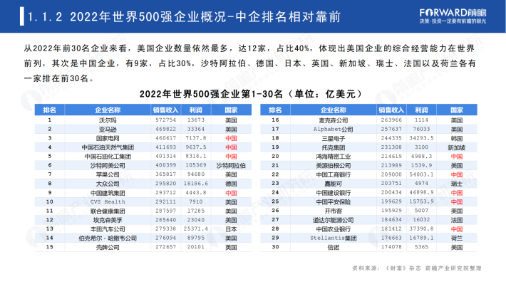 从2022年前30名企业来看,美国企业数量依然最多,达12家,占比40%,体现出美国企业的综合经营能力在世界前列,其次是中国企业,有9家,占比30%,沙特阿拉伯、德国、日本、英国、新加坡、瑞士、法国以及荷兰各有一家排在前30名。