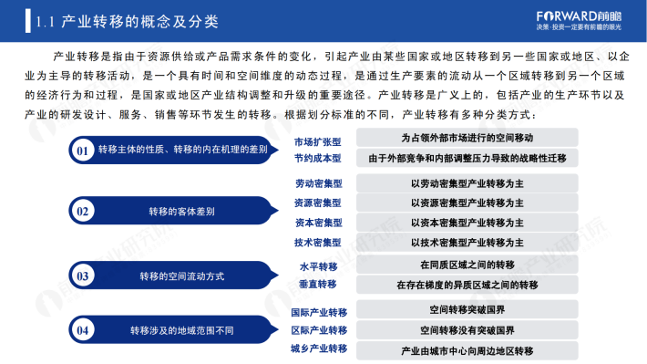 产业转移是指由于资源供给或产品需求条件的变化,引起产业由某些国家或地区转移到另一些国家或地区、以企业为主导的转移活动,是一个具有时间和空间维度的动态过程,是通过生产要素的流动从一个区域转移到另一个区域的经济行为和过程,是国家或地区产业结构调整和升级的重要途径。产业转移是广义上的,包括产业的生产环节以及产业的研发设计、服务、销售等环节发生的转移。