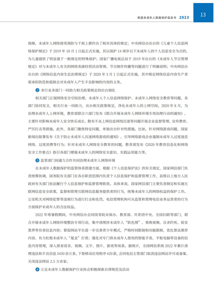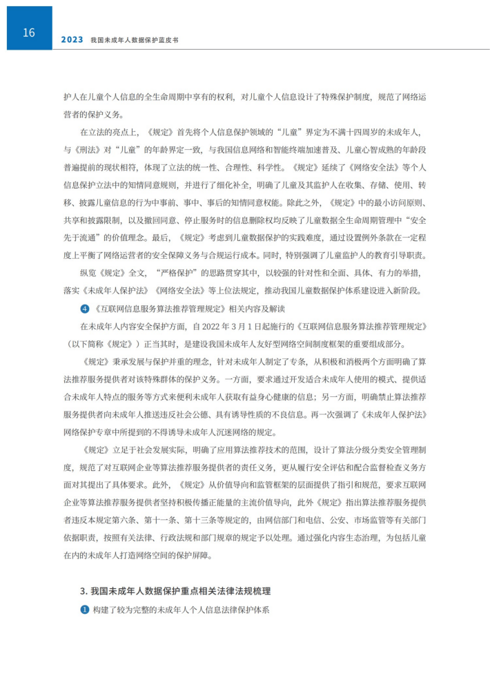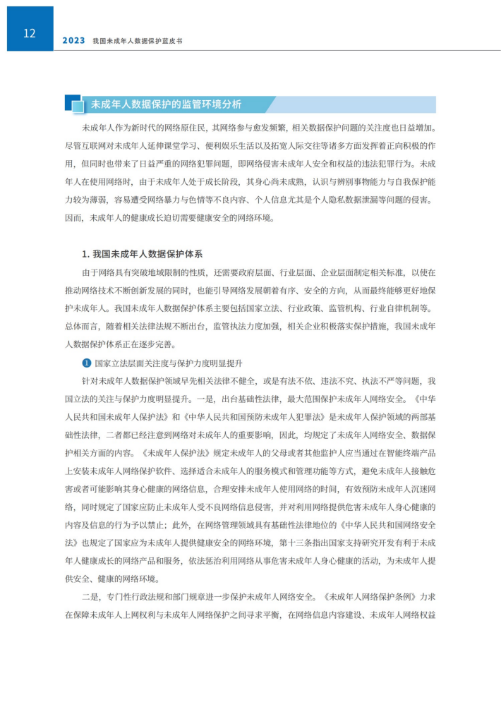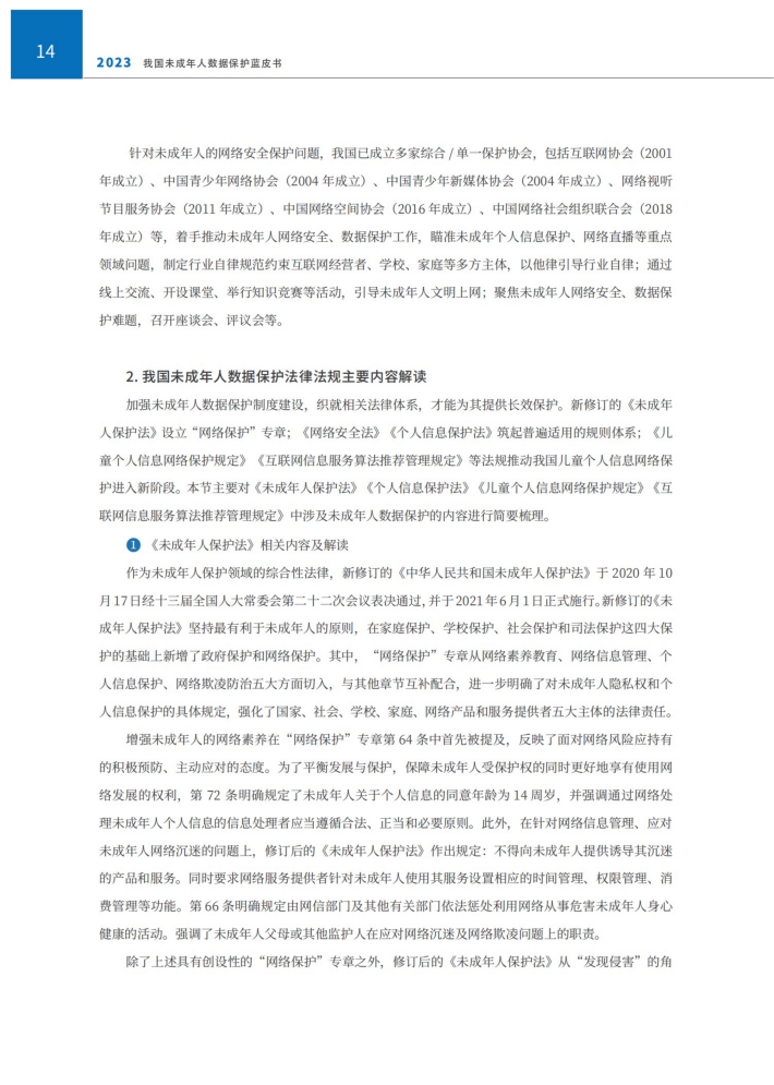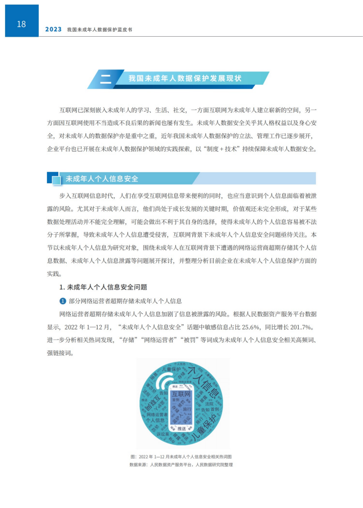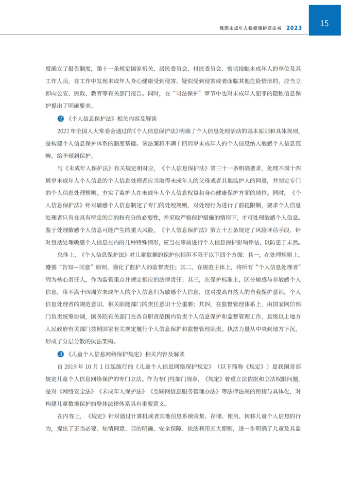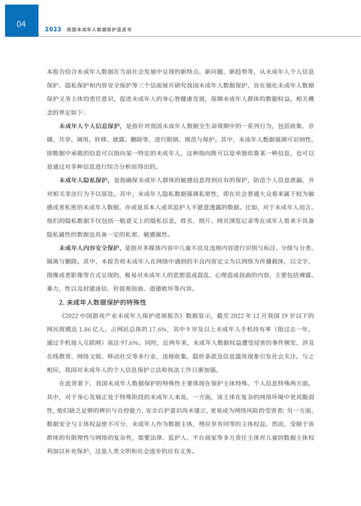 本报告结合未成年人数据在当前社会发展中呈现的新特点、新问题、新趋势等,从未成年人个人信息保护、隐私保护和内容安全保护等三个层面展开研究我国未成年人数据保护,旨在强化未成年人数据保护义务主体的责任意识,促进未成年人的身心智健康发展,保障未成年人群体的数据权益。