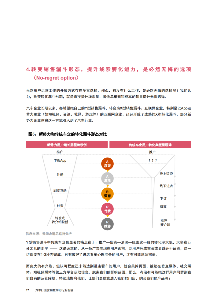 另一个误区是,许多传统车企将数字化系统当做“万灵药”,期望通过系统搭建解决所有问题。然而,精细化流程驱动的运营体系才是系统真正的“灵魂”所在:包括一套贯穿总部一区域—门店的运营机制;一套同时适配于企业自身特点,又兼具用户体验和流通效率的运营流程,一套管理到人、结果和过程并重的考核标准等…最后将这些沉淀固化到一个敏捷贯通的系统中,方能真正释放数字化的价值。与此同时,在缺乏整体架构梳理的情况下,简单堆叠新的数字化系统,又会为未来的系统反应速度与更新速度埋下深坑。因此,如果车企期望绕过难啃的运营与技术转型,缺乏躬身入局一线的决心,模式创新可能只能是停留在表象的口号。