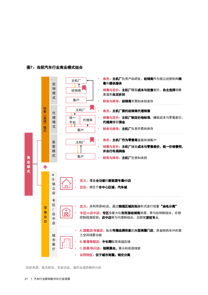 实际上,销售模式之间并不存在必然的对错和对立关系。模式之争的背后实质是能力之辩,核心是能否建立起与模式相匹配的DTC(Direct to Customer,直联客户)能力体系,其中包括战略层面的目标规划、投入周期容忍度以及战略节奏的匹配,也包括运营层面策略一流程一数据一系统与组织能力的适配。例如直营模式的优势在于对用户体验的全盘掌控和快速反应,然而其渠道投入和管理要求也是最高的,如果主机厂本身无法在这个过程中形成足够的体验溢价、店效规模和组织效率,就会面临投入失效的问题;而代理模式作为中间态,似乎能解决直营投入过高和批售模式管控深度不足的问题,然而又会带来另一重矛盾:即相比于承库的经销商,代理商缺乏足够的驱动力,引流获客捂热和转化等一系列压力开始由主机厂承担,但是却没有相应的能力进行承接,最后又回到压目标压库的老路。