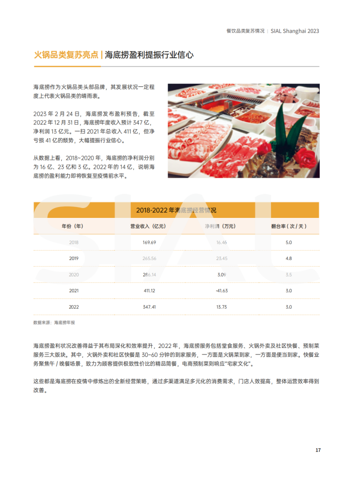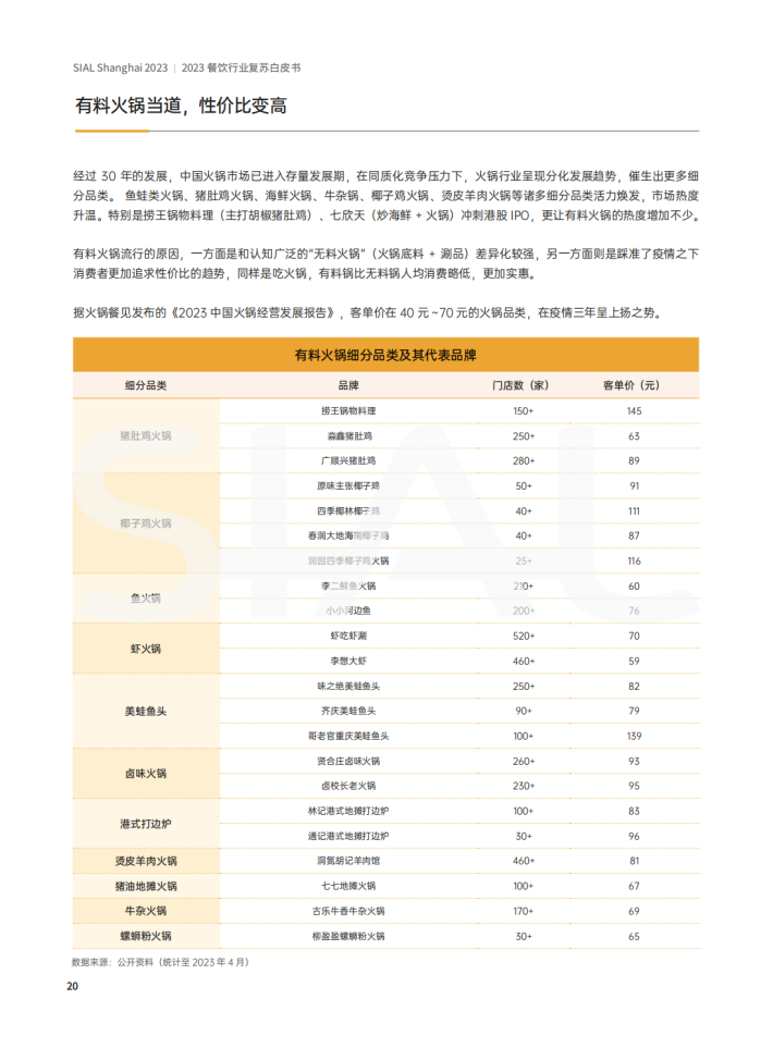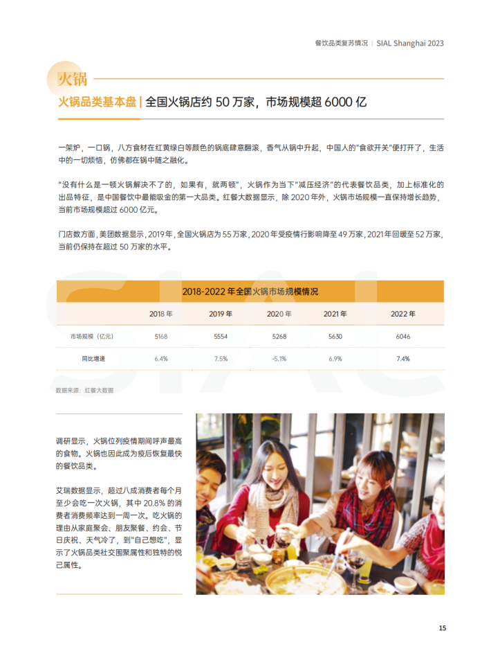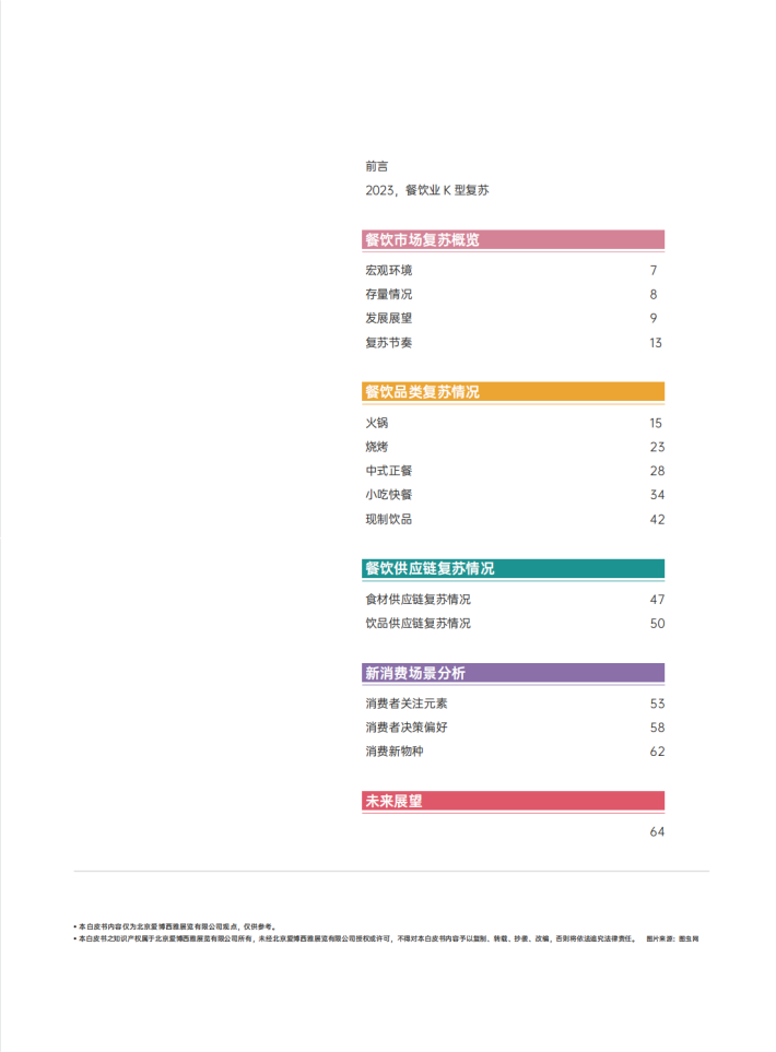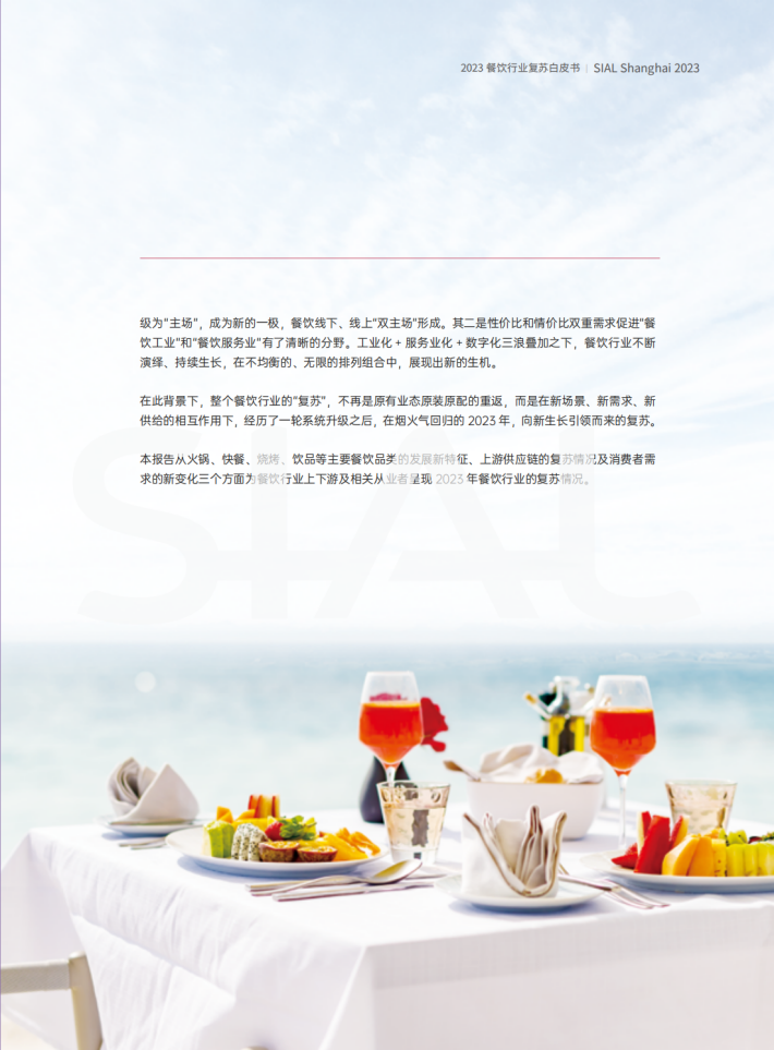 本报告从火锅、快餐、烧烤、饮品等主要餐饮品类的发展新特征、上游供应链的复苏情况及消费者需求的新变化三个方面为餐饮行业上下游及相关从业者呈现2023年餐饮行业的复苏情况。