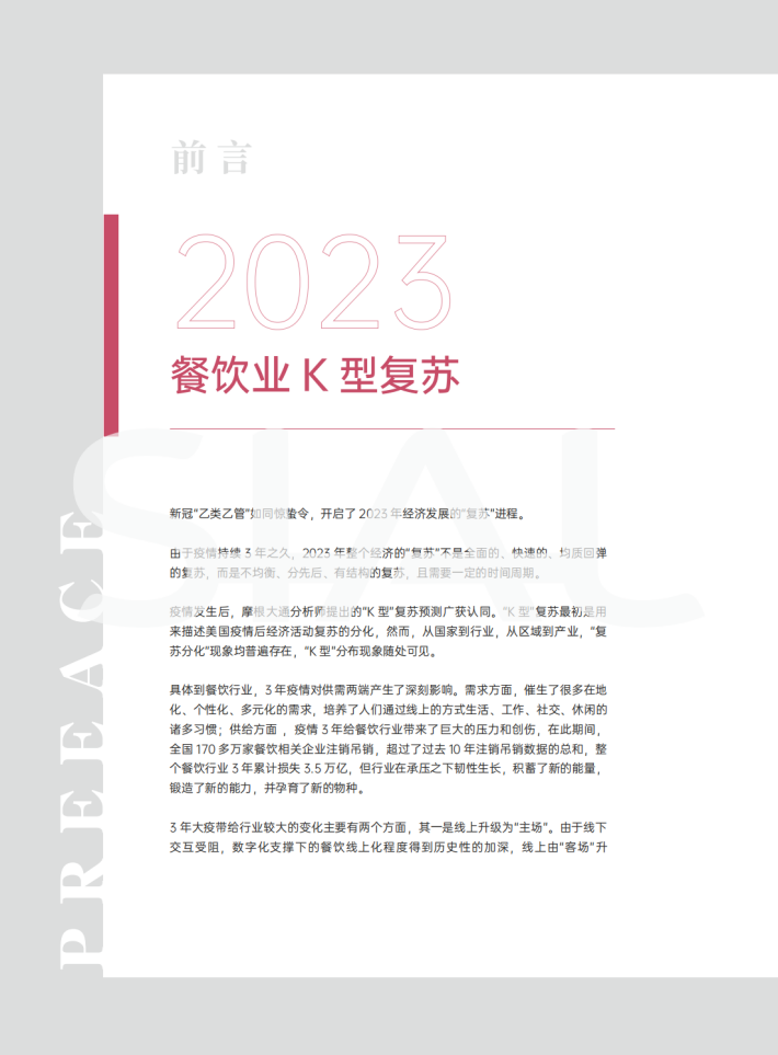 在此背景下,整个餐饮行业的"复苏",不再是原有业态原装原配的重返,而是在新场景、新需求、新供给的相互作用下,经历了一轮系统升级之后,在烟火气回归的2023年,向新生长引领而来的复苏。