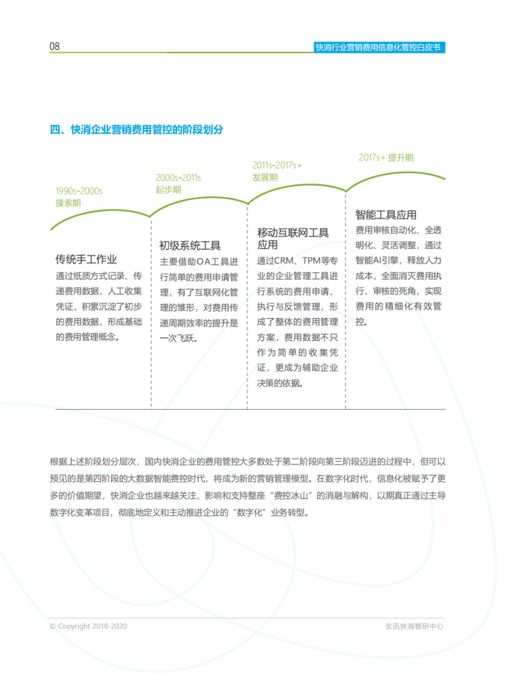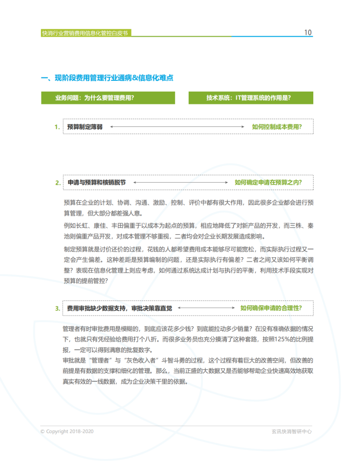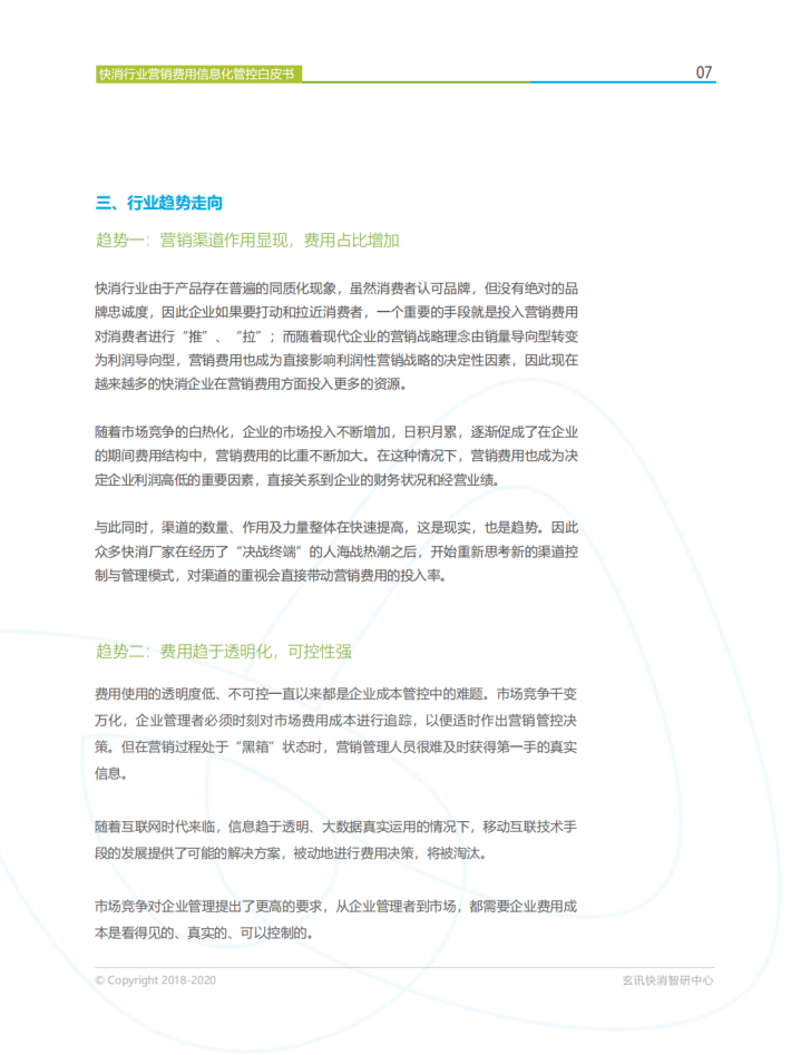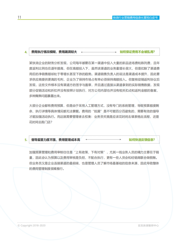 随着市场环境变化与移动互联时代的来临,这种“稳定的现状”开始被打破。渠道作用凸显,营销活动愈发多样,营销费用投入加大,企业的营销费用比重不断加大,成为决定企业利润高低的重要因素。这种变化促使众多快消企业开始重视与业务密切相关的促销活动、通道渠道等的费用的管控。