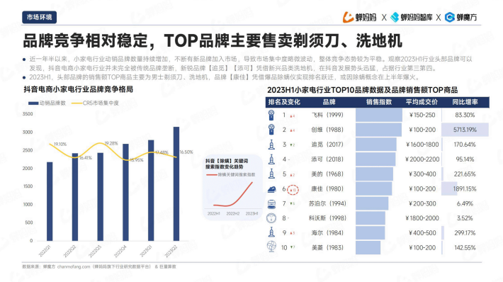 抖音电商小家电行业整体保持上升态势,受大促节点影响较大,行业整体竞争态势平稳