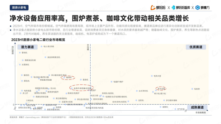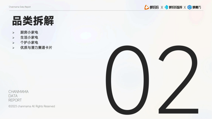 传统三大件(冰箱、彩电、洗衣机)百户量已接近或超过100,与之相比,小家电市场正处于飞速增长阶段,是家电消费扩大的主风口。本报告以2022年1月至2023年6月为分析时间窗口,从市场、人群等角度探究消费新趋势下小家电行业的发展,以及深入分析了近几年小家电行业内的黑马选手:洗地机赛道。