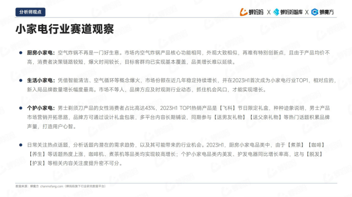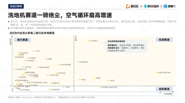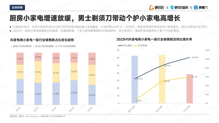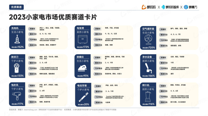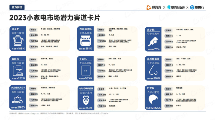 厨房小家电中,空气炸锅市场份额缩减;生活小家电中,洗地机市场扩张;个护小家电中,美发护发产品增长趋势明显