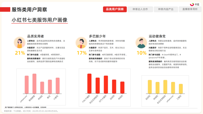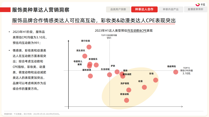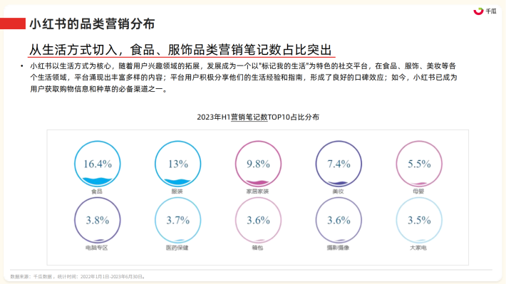 2023年上半年,小红书平台大力扶持直播功能,打通直播产品链路,直播场次相比去年同期增长了267%,直播达人数量增加了258%;此外,平台直播以独特的风格脱颖而出,例如董洁开启的“种草分享型”品质慢直播的特色带货方式,为明星直播领域带来了全新的形式和创意。