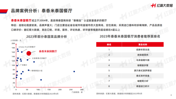2023年,异国料理泰国菜热度不减,泰国菜品牌也在进一步深耕全国消费市场。随着消费者对泰国文化认知度不断提高,泰国菜在我国迎来不错的发展,成为东南亚菜赛道中热度最高的一个细分品类