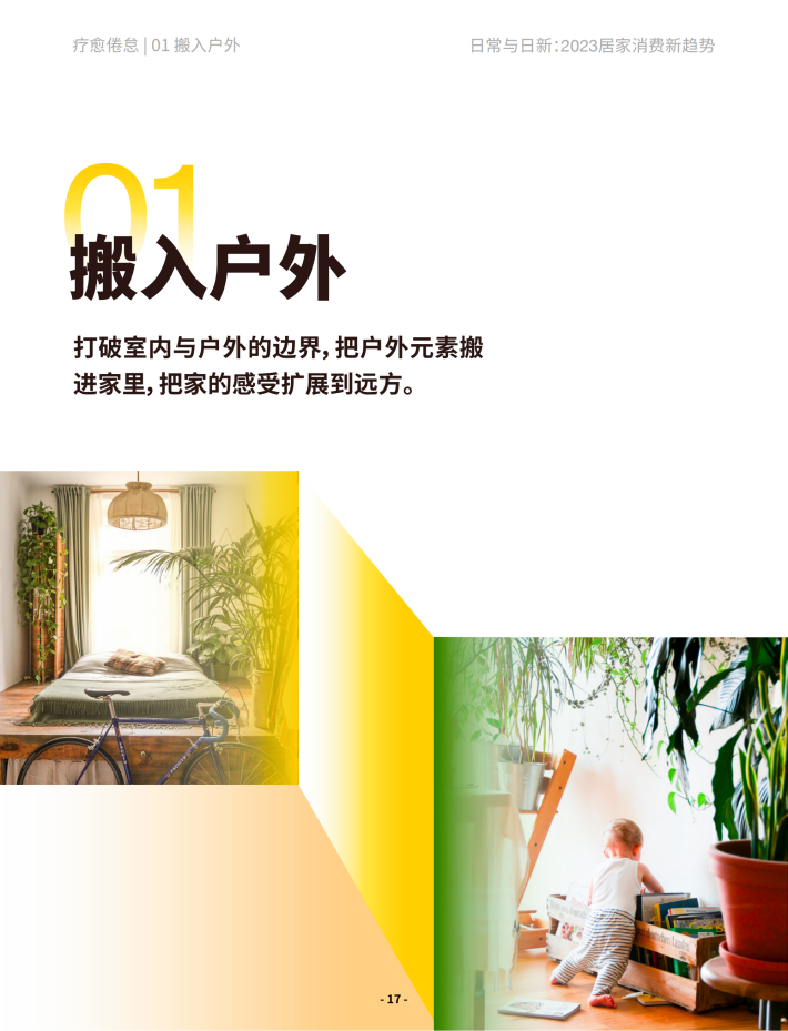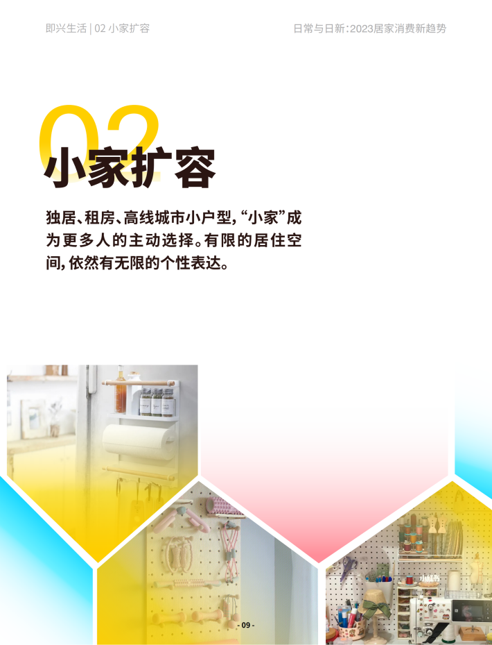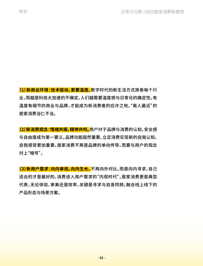 (3)新用户需求:向内审视,向内生长。不再向外对比,而是向内寻求,自己适合的才是最好的。消费进入用户需求的“内观时代”,居家消费更是典型代表,无论体验、审美还是效率,关键是寻求与自身同频,融合线上线下的产品形态与场景方案。