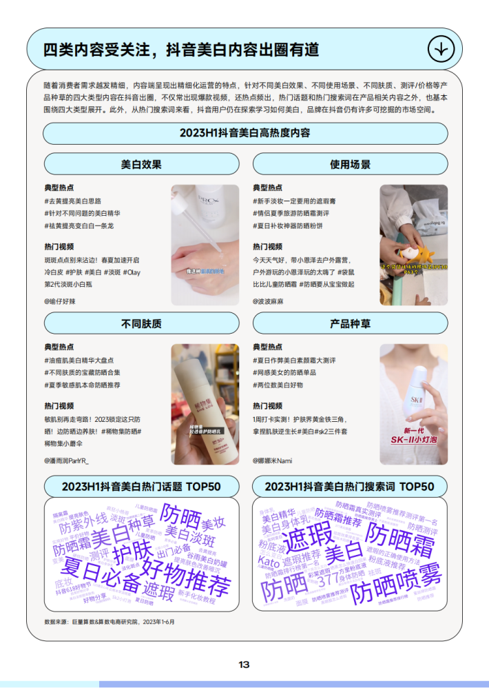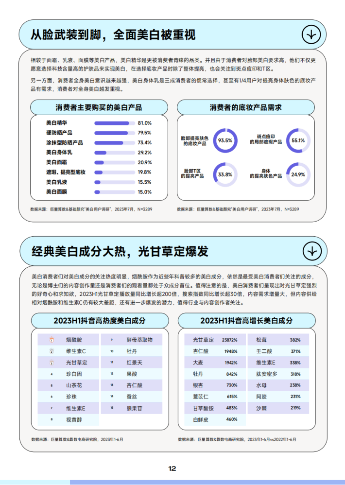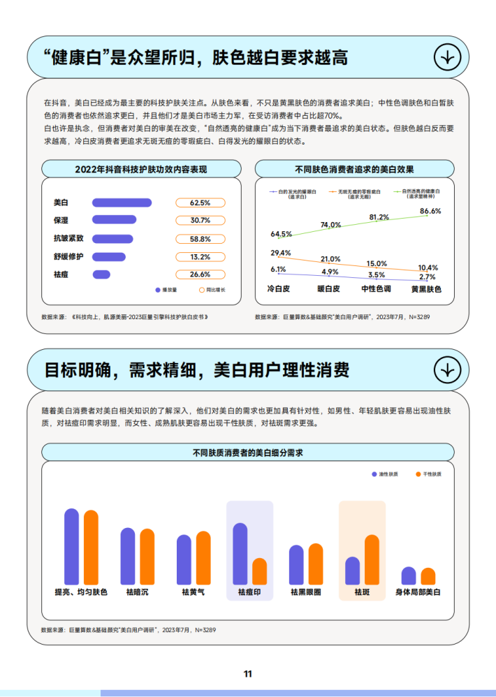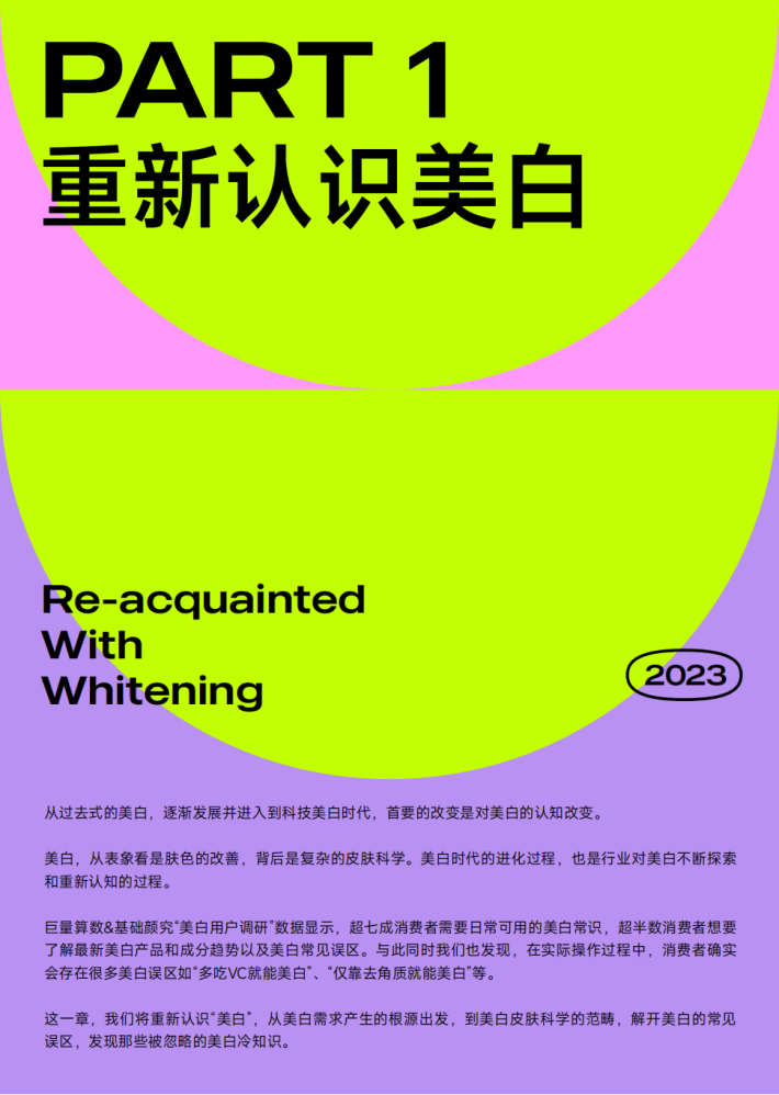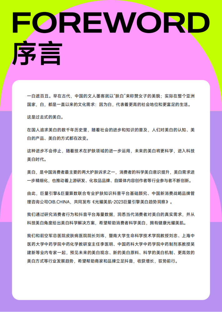 由此,巨量引擎&巨量算数联合专业护肤知识科普平台基础颜究、中国新消费战略品牌管理咨询公司OIB.CHINA,共同发布《光耀美肌-2023巨量引擎美白趋势洞察》。