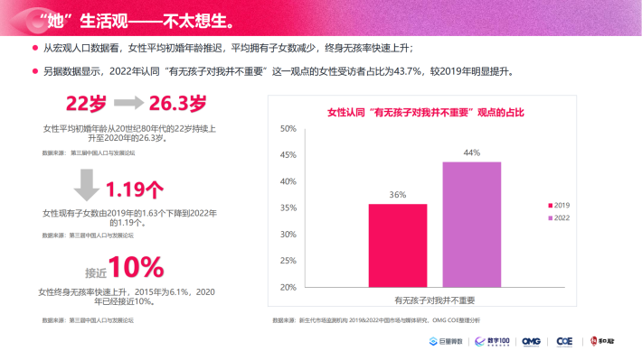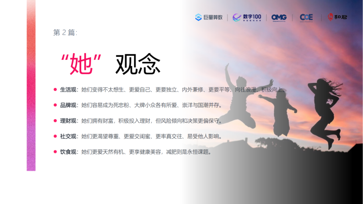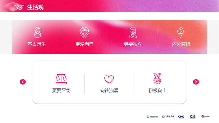 女性能顶半边天。女性人口占比将近一半,且规模呈稳步扩大趋势。其中,移动互联网女性群体活跃用户数达到近6亿。