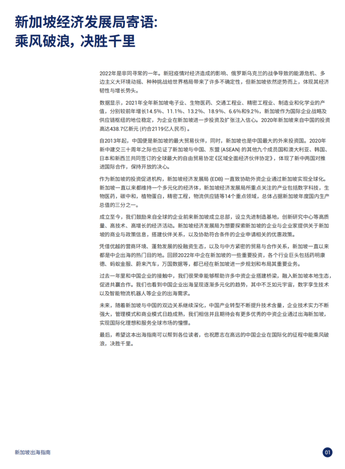 未来,随着新加坡与中国的双边关系继续深化,中国产业转型不断提升技术含量,企业技术实力不断强大,管理模式和商业模式日趋成熟,我们相信并且期待会有更多优秀的中资企业通过出海新加坡,实现国际化理想和服务全球市场的憧憬。