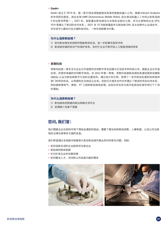 过去一年里和中国企业的接触中,我们很荣幸能够帮助许多中资企业搭建桥梁,融入新加坡本地生态,促进共赢合作。我们也看到中国企业出海呈现逐渐多元化的趋势,其中不乏如元宇宙,数字孪生技术以及智能物流机器人等企业的出海需求。