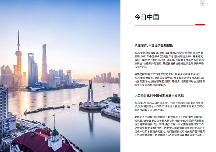 2022年新冠疫情反弹,对经济发展和人们的生活秩序带来严重影响。2022年中国GDP(国内生产总值)的增速为3%,并未达到政府于年初定下的目标。利好消息是,中国并未经历西方市场通胀高企、价格飙升的现象,其居民消费价格指数于全年保持平稳(2%左右)。