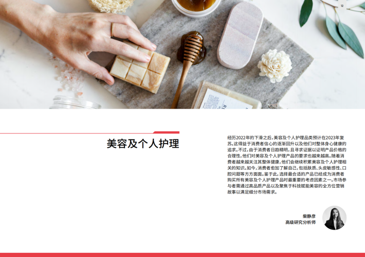 疫情防控措施于2022年末放宽之后,社会活动和经济活动于2023年开始复苏。根据国家统计局,大多数非必要支出品类已开始呈现正增长,如金银珠宝、服装、鞋帽、针纺织品和彩妆。整体零售业的复苏趋势将继续推进。