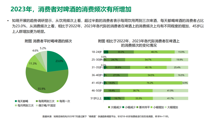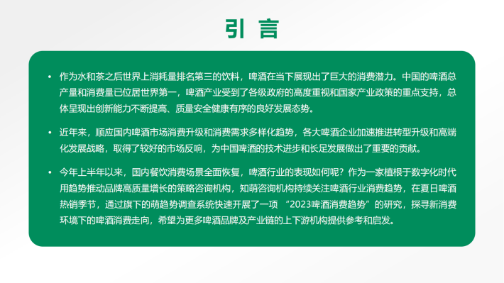 作为一家植根于数字化时代用趋势推动品牌高质量增长的策略咨询机构,知萌咨询机构持续关注啤酒行业消费趋势,在夏日啤酒热销季节,通过旗下的萌趋势调查系统快速开展了一项“2023啤酒消费趋势”的研究,探寻新消费环境下的啤酒消费走向,希望为更多啤酒品牌及产业链的上下游机构提供参考和启发。