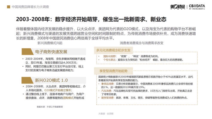随着中国加入WTO、北京举办奥运会等大事件的发生,我国经济在世界经济危机的背景下仍保持着稳健增长,这一阶段宏观政策积极引导扩大内需、鼓励消费,国内各行各业生产力旺盛、竞争加剧,消费者成为市场追逐的核心。