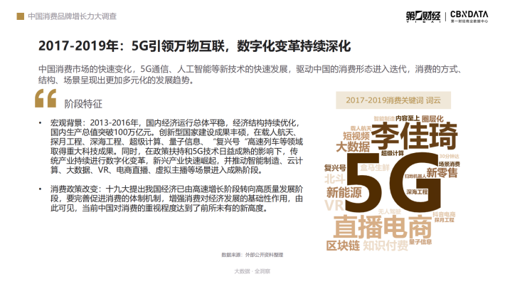 从“3G突破”到“4G同步”,再到“5G引领”,数字经济的发展打开了“互联网+商业”的无限想象空间,改变了人们从社交到娱乐的生活习惯、从购物到饮食的消费习惯。从沿海到内陆,从一线城市到更为庞大的县域市场,中国消费持续提质升级,开始了一轮又一轮变革。
