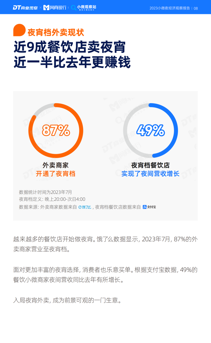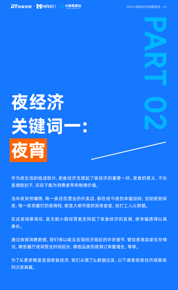 小微力量如星星点点的炬火,勾勒出了夜经济的一片繁荣,本篇报告将从夜宵、夜购、夜生活三部分出发,阐释小微企业在夜经济中的贡献,以及当前夜经济发展特点。