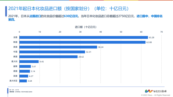 2021年,日本制造商的护肤品销售额约为6900亿日元,延续了上年的下降趋势;乳液的销量占比最大,美容液紧随其后。