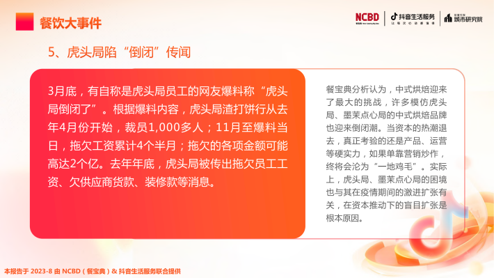 中式烘焙迎来了最大的挑战,许多模仿虎头局、墨茉点心局的中式烘焙品牌也迎来倒闭潮。当资本的热潮退去,真正考验的还是产品、运营等硬实力,如果单靠营销炒作,终将会沦为“一地鸡毛”。实际上,虎头局、墨茉点心局的困境也与其在疫情期间的激进扩张有关,在资本推动下的盲目扩张是根本原因。