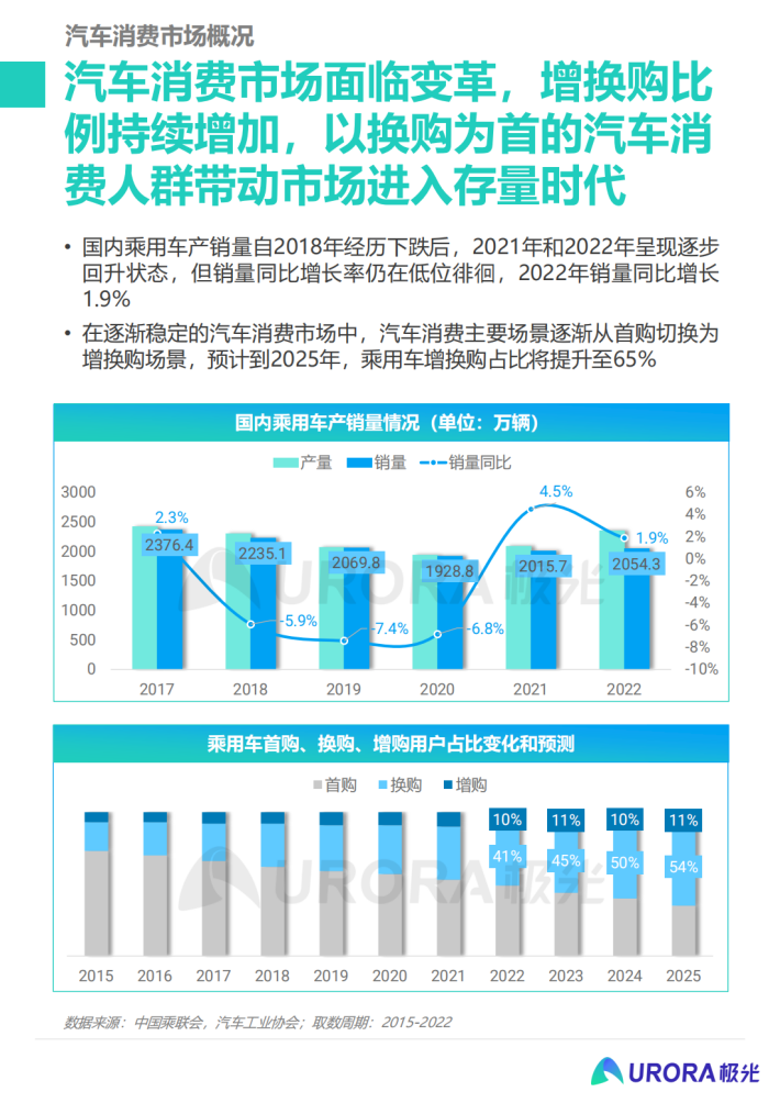 在逐渐稳定的汽车消费市场中,汽车消费主要场景逐渐从首购切换为增换购场景,预计到2025年,乘用车增换购占比将提升至65%