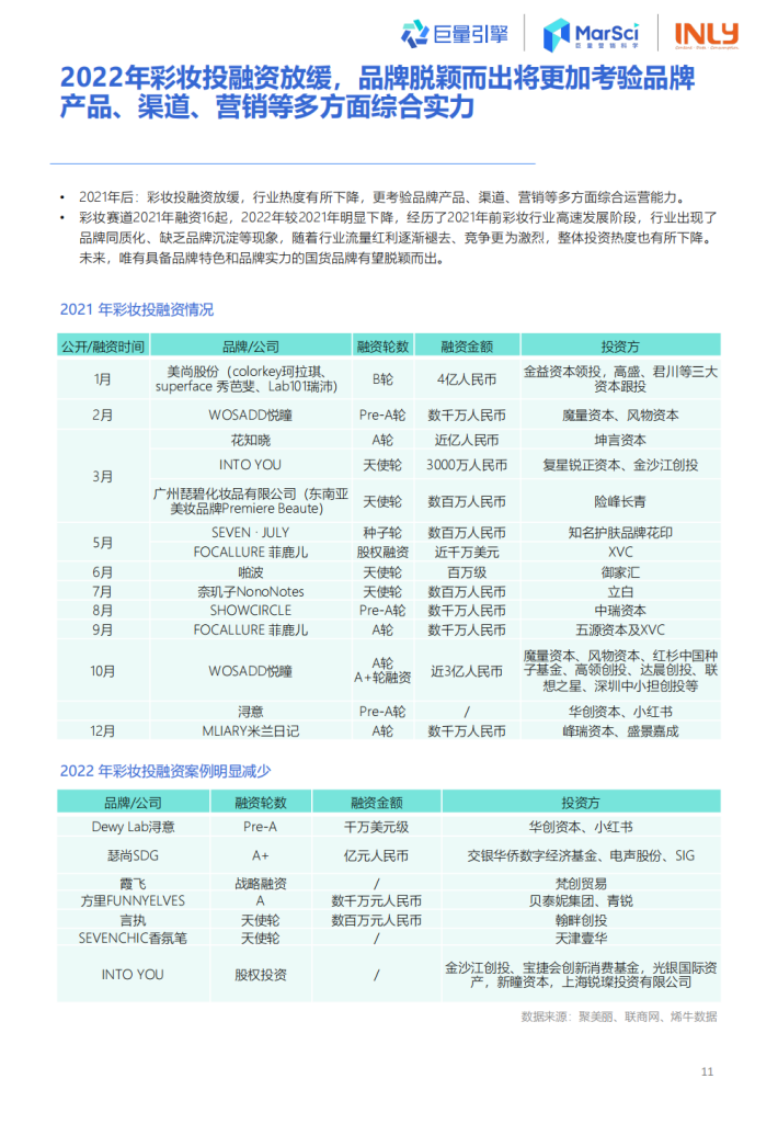国货彩妆品牌经历过线上红利快速崛起阶段,也正在经历着彩妆投融资热度放缓的趋势变化。面临流量红利退却、营销成本高企的现状,昔日靠烧钱营销占领市场地位的新锐美妆品牌需要回归理性的营销道路,尤其是研发门槛、消费者忠诚度相对较低的彩妆赛道。