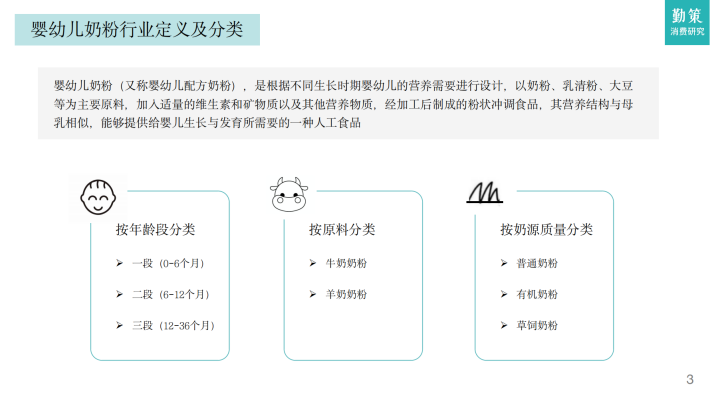 婴幼儿奶粉(又称婴幼儿配方奶粉),是根据不同生长时期婴幼儿的营养需要进行设计,以奶粉、乳清粉、大豆等为主要原料,加入适量的维生素和矿物质以及其他营养物质,经加工后制成的粉状冲调食品,其营养结构与母乳相似,能够提供给婴儿生长与发育所需要的一种人工食品
