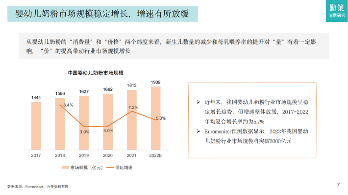 Euromonitor预测数据显示,2023年我国婴幼儿奶粉行业市场规模将突破2000亿元