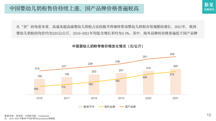 从婴幼儿奶粉的“消费量”和“价格”两个纬度来看,新生儿数量的减少和母乳喂养率的提升对“量”有着一定影响, “价”的提高带动行业市场规模增长