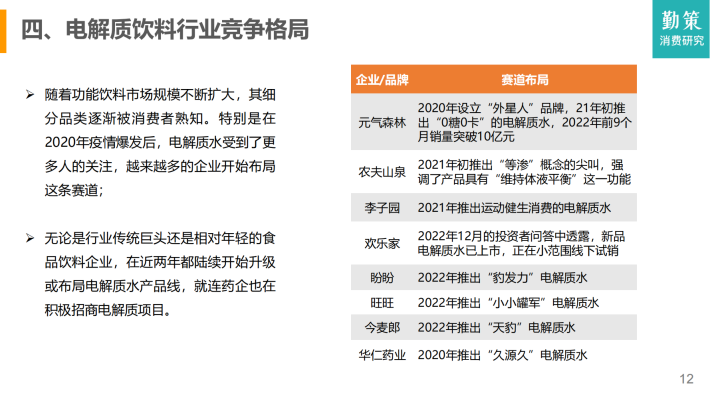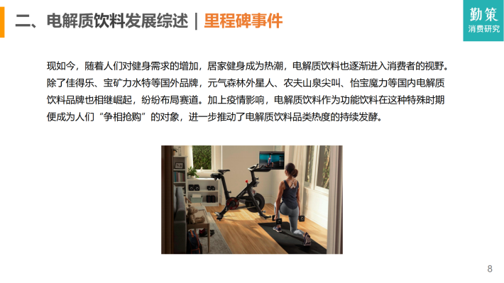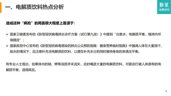 现如今,随着人们对健身需求的增加,居家健身成为热潮,电解质饮料也逐渐进入消费者的视野。除了佳得乐、宝矿力水特等国外品牌,元气森林外星人、农夫山泉尖叫、怡宝魔力等国内电解质饮料品牌也相继崛起,纷纷布局赛道。加上疫情影响,电解质饮料作为功能饮料在这种特殊时期便成为人们“争相抢购”的对象,进一步推动了电解质饮料品类热度的持续发酵。