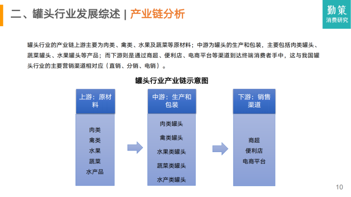 罐头食品指把食物装在罐头里以达到长期保存的目的,其中主要以果蔬、肉禽、水产等为生产原料,经过预处理、装罐、排气、密封、杀菌、冷却、包装等常规加工流程,而形成的一种商业无菌罐装食品。我国罐头食品是最先进入国际市场的食品品类之一,由于国内缺乏食用罐头食品的习惯,因此我国的罐头食品主要用于出口,是较为典型的出口型产业。
