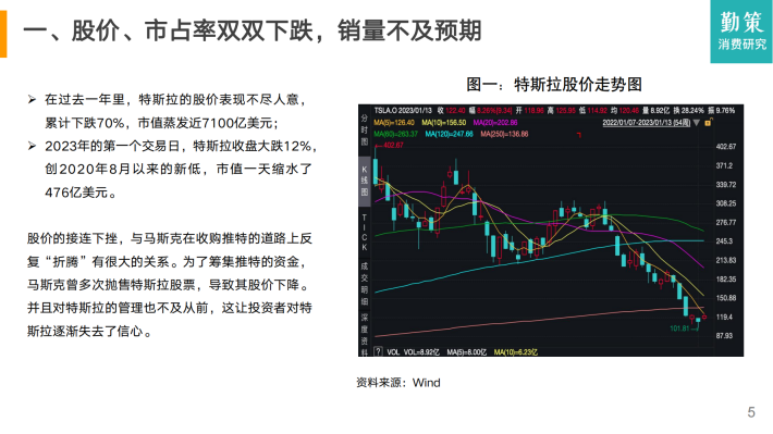 股价的接连下挫,与马斯克在收购推特的道路上反复“折腾”有很大的关系。为了筹集推特的资金,马斯克曾多次抛售特斯拉股票,导致其股价下降。并且对特斯拉的管理也不及从前,这让投资者对特斯拉逐渐失去了信心。