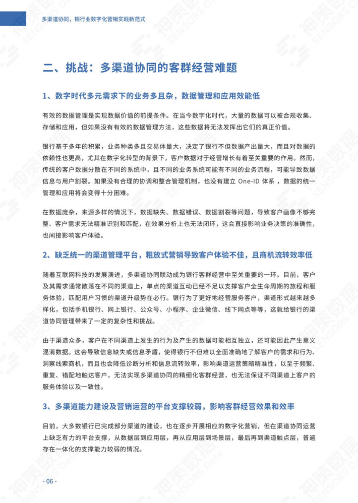 由于人口红利的消退,银行面临着新客户增长缓慢的情况。各家银行之间的业务重叠度较大,使得增长空间有限,市场竞争也将更加激烈,客户流失风险不断提高。至此,银行在寻找新的市场增长点的同时,需要更加重视现有客户的管理和挖掘,实现客户价值最大化。客群经营从跑马圈地的阶段进入到《规划》中以“横向打通、纵向贯通、协调有力”为主要目标的存量经营时代。