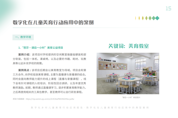 社会背景:数字化技术迅猛发展,深刻改变了社会人才需求和教育形态。智能环境不仅改变了教与学的方式,而且已经开始深入影响到教育的理念、文化和生态。但乡村学校因缺乏完善的教学设施和优质的教学资源,在数字化教育提升下,更是面临着巨大的教学困境,这也给乡村儿童美育行动提出了更多的挑战,如何主动利用数字化技术打破乡村学校的困境,赋能乡村儿童美育行动的开展,实现乡村儿童教育的高质量发展,是需要乡村儿童美育行动者们去尝试突破的。