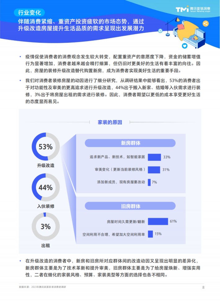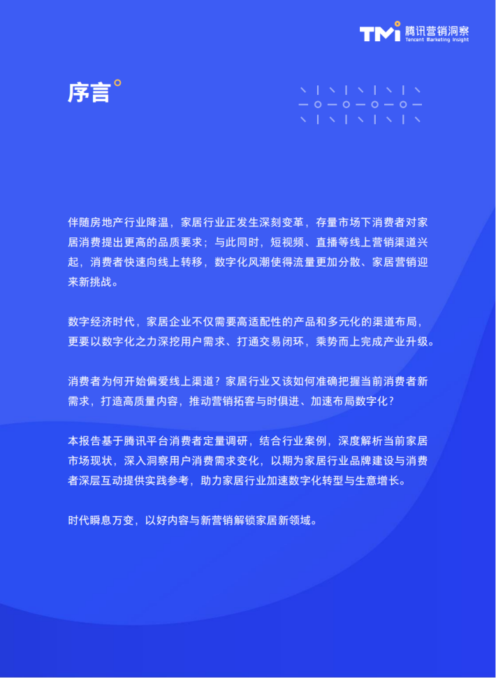 本报告基于腾讯平台消费者定量调研,结合行业案例,深度解析当前家居市场现状,深入洞察用户消费需求变化,以期为家居行业品牌建设与消费者深层互动提供实践参考,助力家居行业加速数字化转型与生意增长。