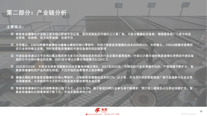 基于智能家居摄像机赛道的热度不断上升,吸引了更多跨行业厂商进入。360主营信息安全业务,也是最早开发智能家居摄像机产品的厂商,其产品技术方案已经成熟。OPPO作为智能消费硬件品牌,凭借其手机、电脑、手表等产品的ColorOS操作系统生态,横向拓宽智能消费硬件品类。TCL、联想、普联作为老牌智能硬件厂商,深入布局智能家居摄像机赛道