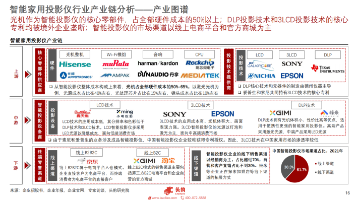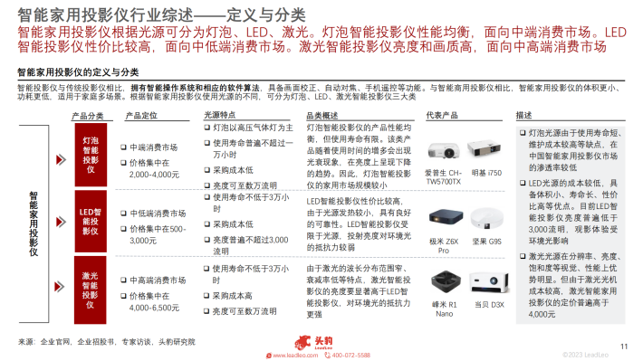 中国智能家用投影仪的消费分级趋势明显,行业竞争格局呈现多级分化的态势